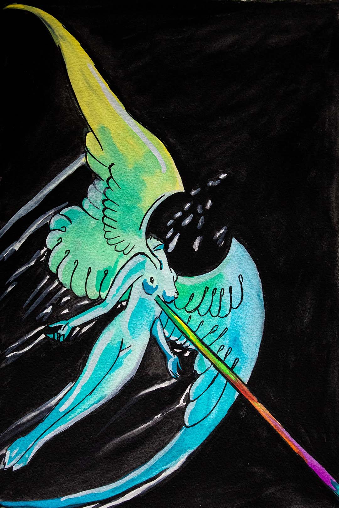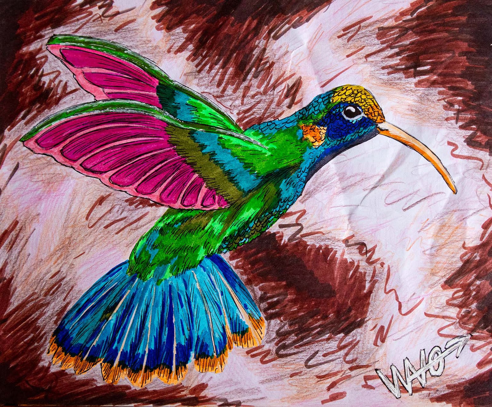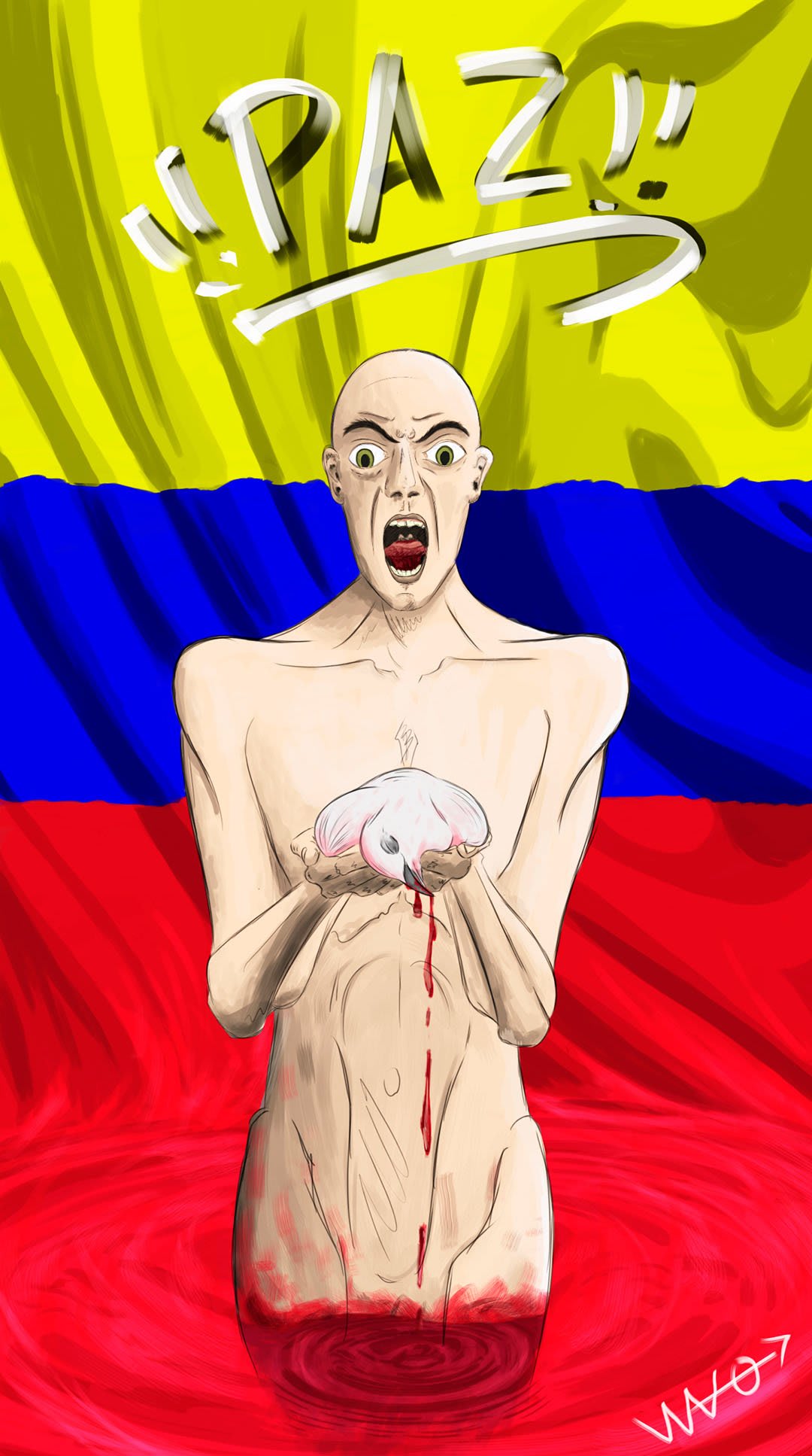 Lapiz, boligrafo, colores, plumones y rotuladores sobre papel. Cuento corto para el concurso Bogotá 100 palabras: Próxima parada (Bogota 100 palabras)Tomo el ruta fácil y detrás de mi entra ella, nos saluda a todos, la entiendo bien, fui media vida migrante, vendí artesanías en trenes y metros, en otro país me enamore perdidamente de una venezolana, su rostro viene a mi memoria. La joven mujer termina de vender sus dulces, se acerca y me pregunta:-oye pana, sabes como llego al Santa Fé?- -no deberías ir allí, ese barrio traga a las personas-contesto, me esquiva con la mirada y sigue su camino. En los cerros alumbra Monserrate y más arriba la luna que es la misma para mí y para ella.