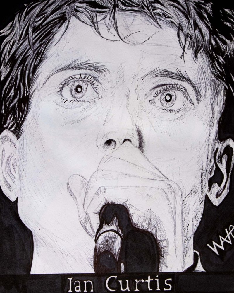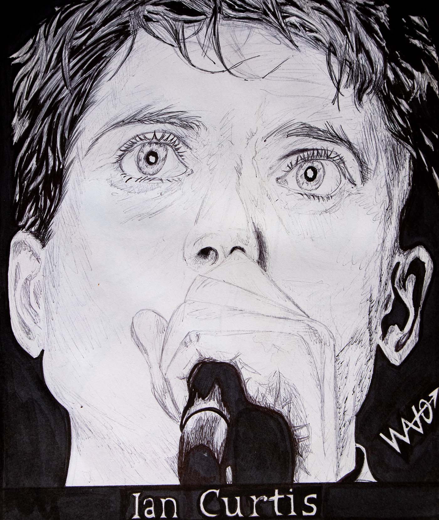 Bolígrafo y tinta sobre papel. Ian Curtiz fue el vocalista de la banda Británica Joy Division, me encanta su canción love will tear us apart, Hice este retrato en su memoria.