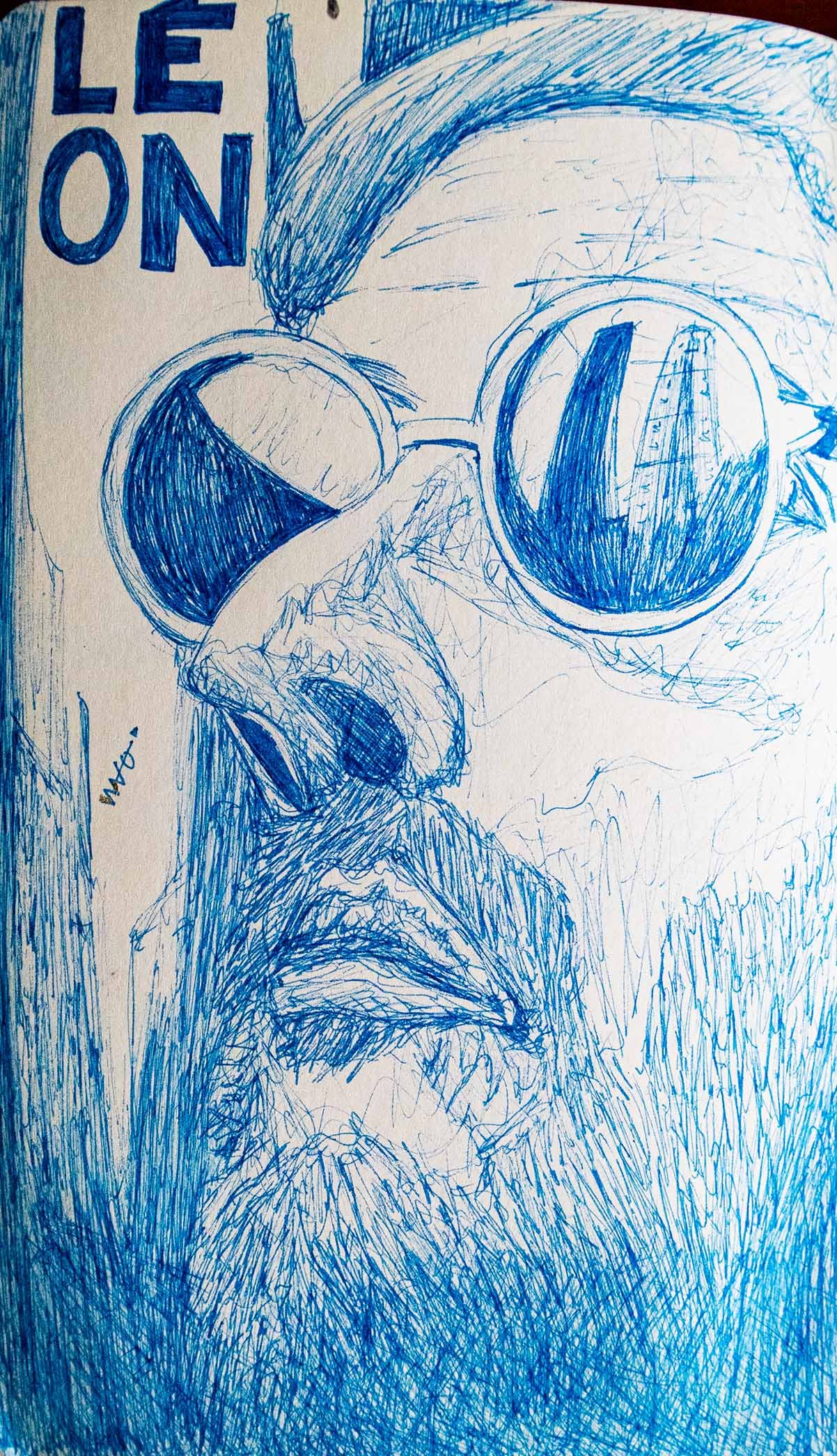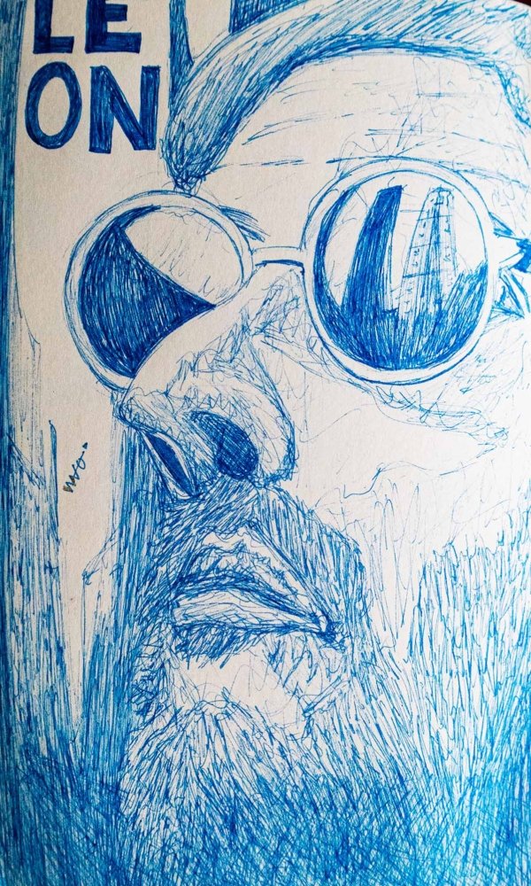 Bolígrafo sobre papel: Fan art de la pelicula Leon el Profesional dirigida por Luc Besson
