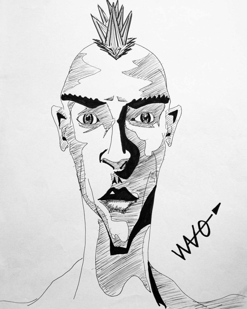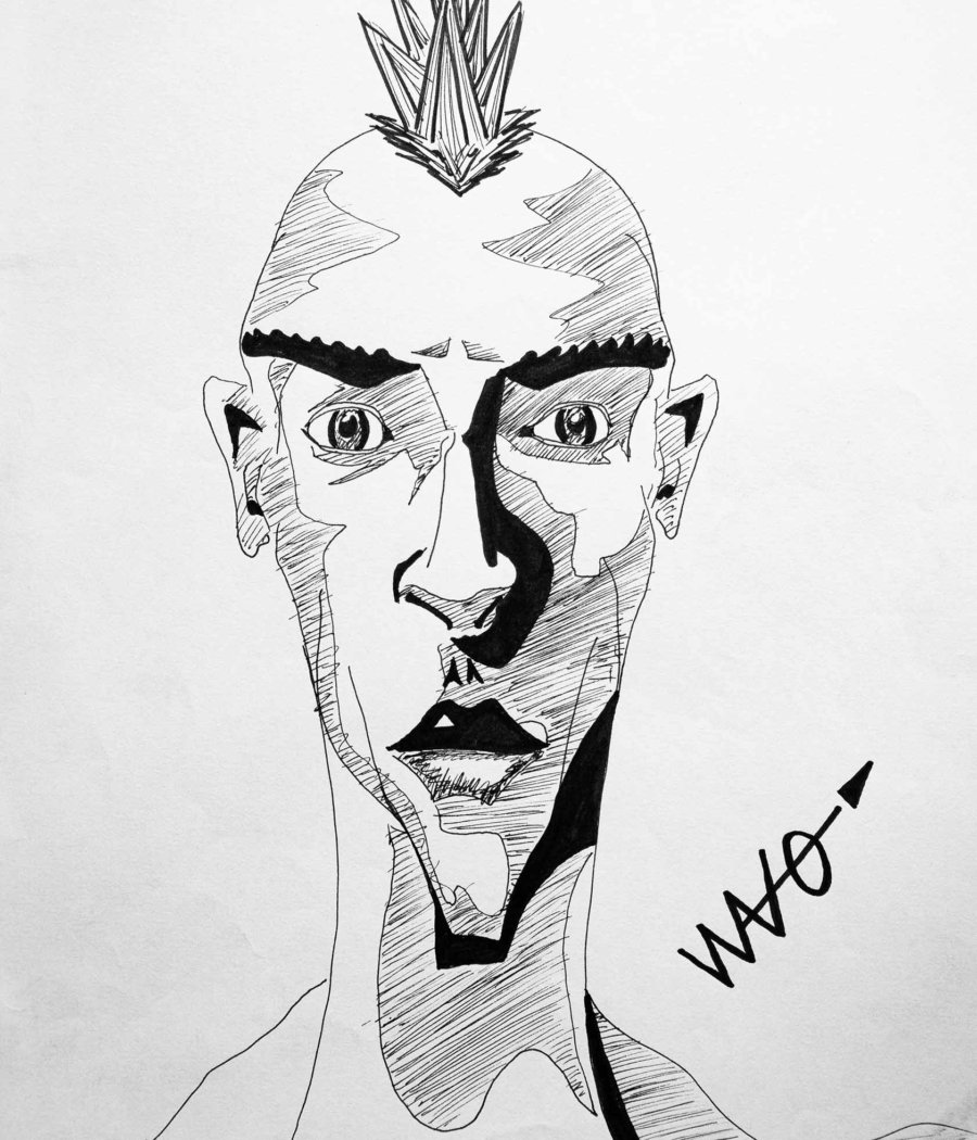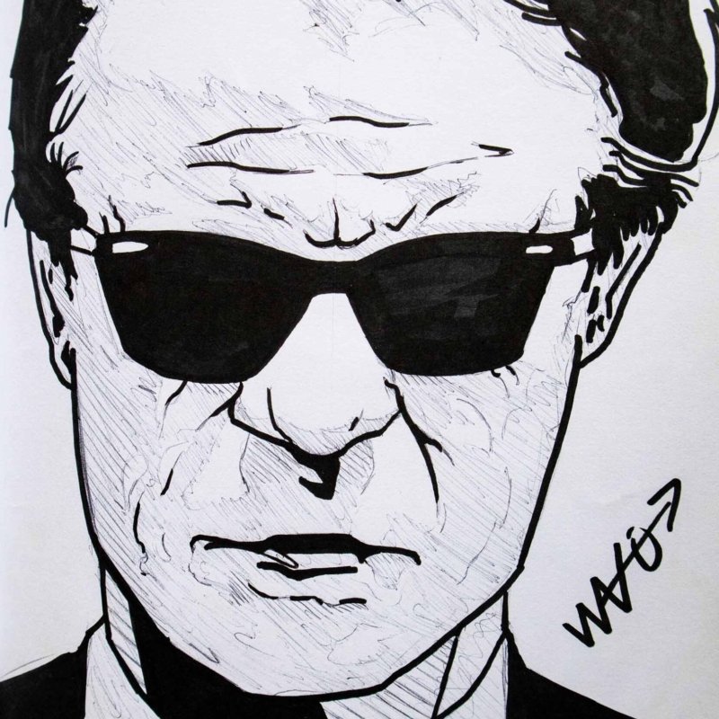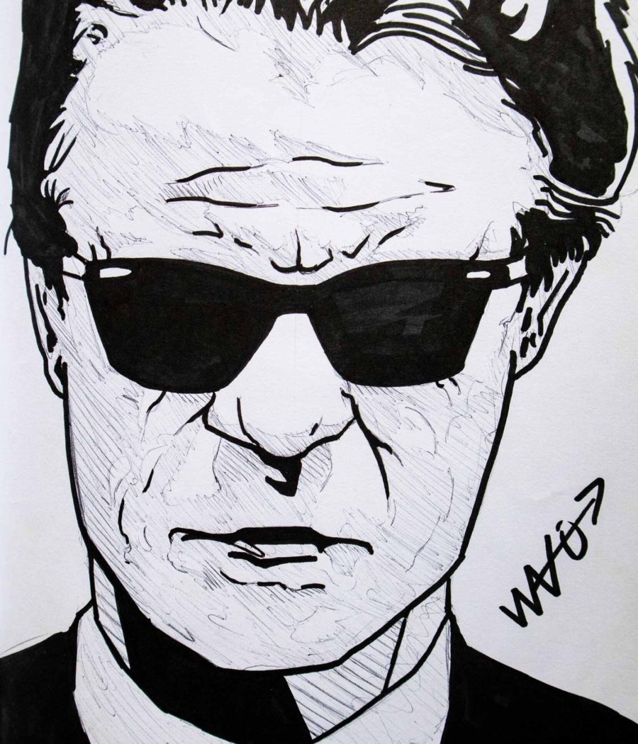 Bolígrafo y sharpie sobre papel: El señor blanco de la película Perros de la reserva, dirigida por Quenting Tarantino.