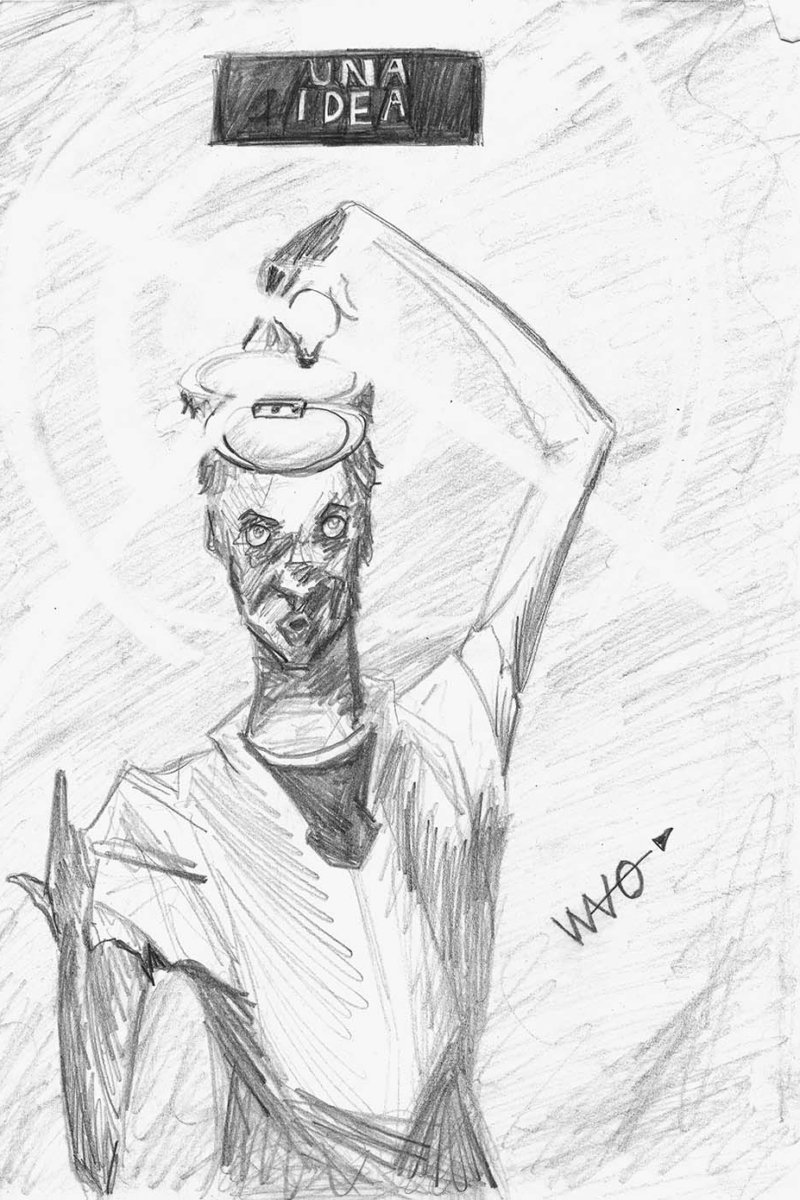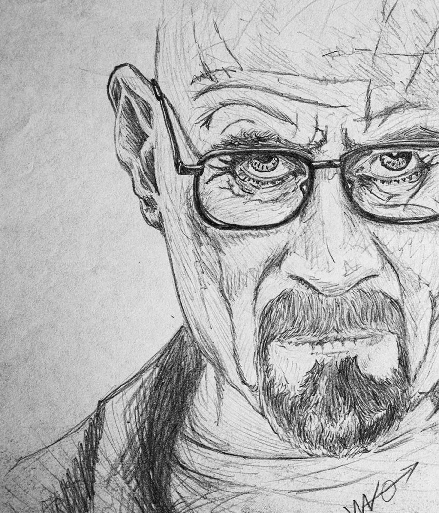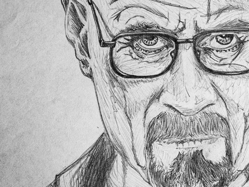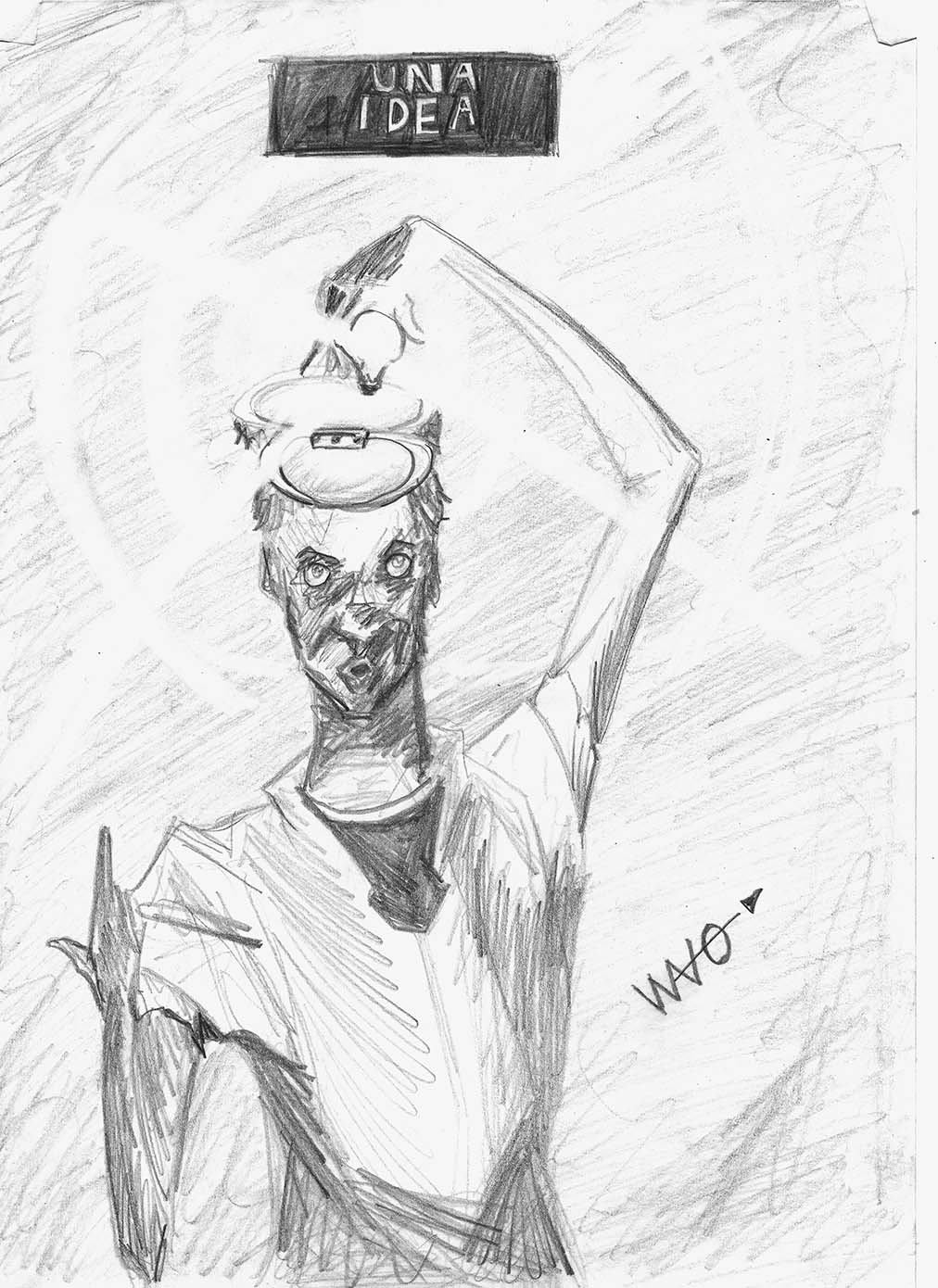 Bolígrafo y sharpie sobre papel: El señor blanco de la película Perros de la reserva, dirigida por Quenting Tarantino.