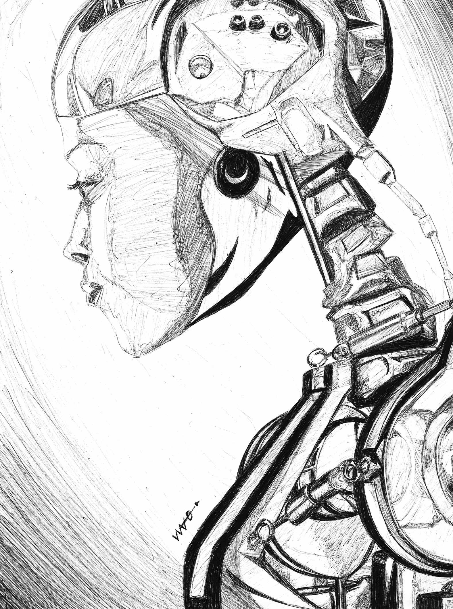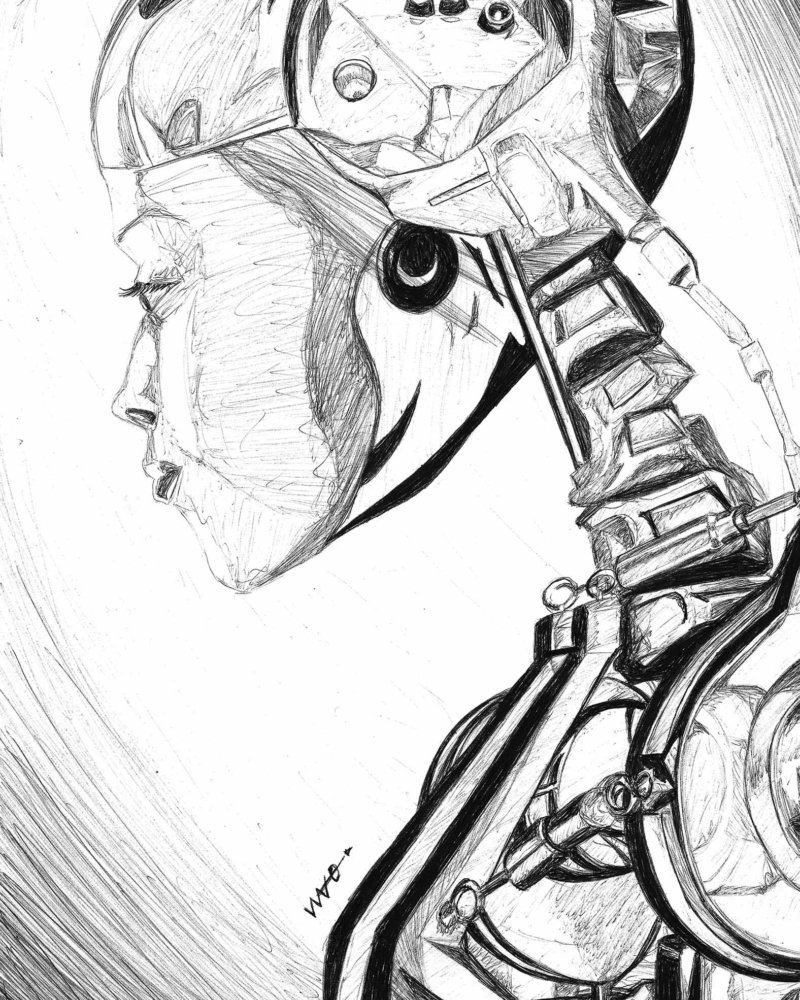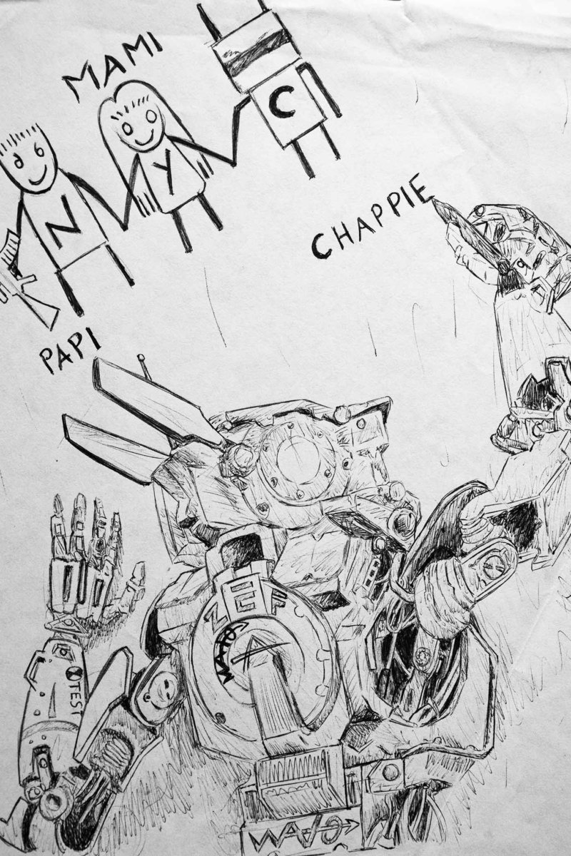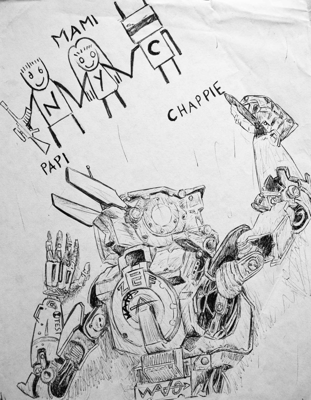Bolígrafo sobre papel: Fan Art de la película Chappie dirigida por Neill Blomkamp.