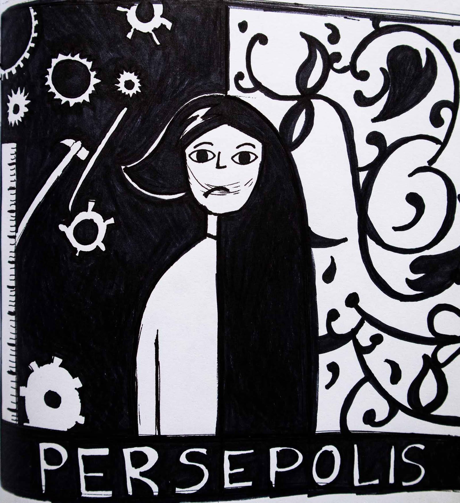 Tinta sobre papel. Fanart de la película Persépolis, dirigida por Marjane Satrapi