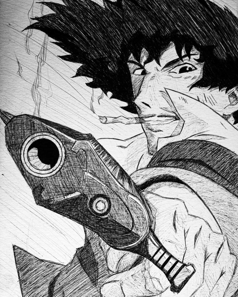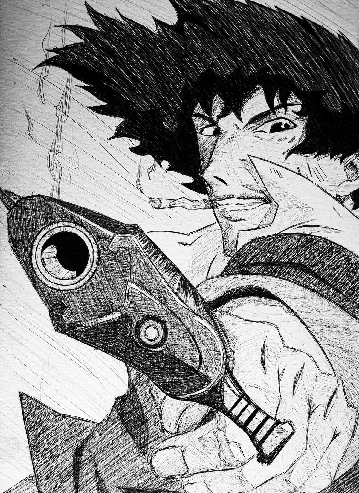 Bolígrafo sobre papel, fantart de la serie Cowboy Bebop.