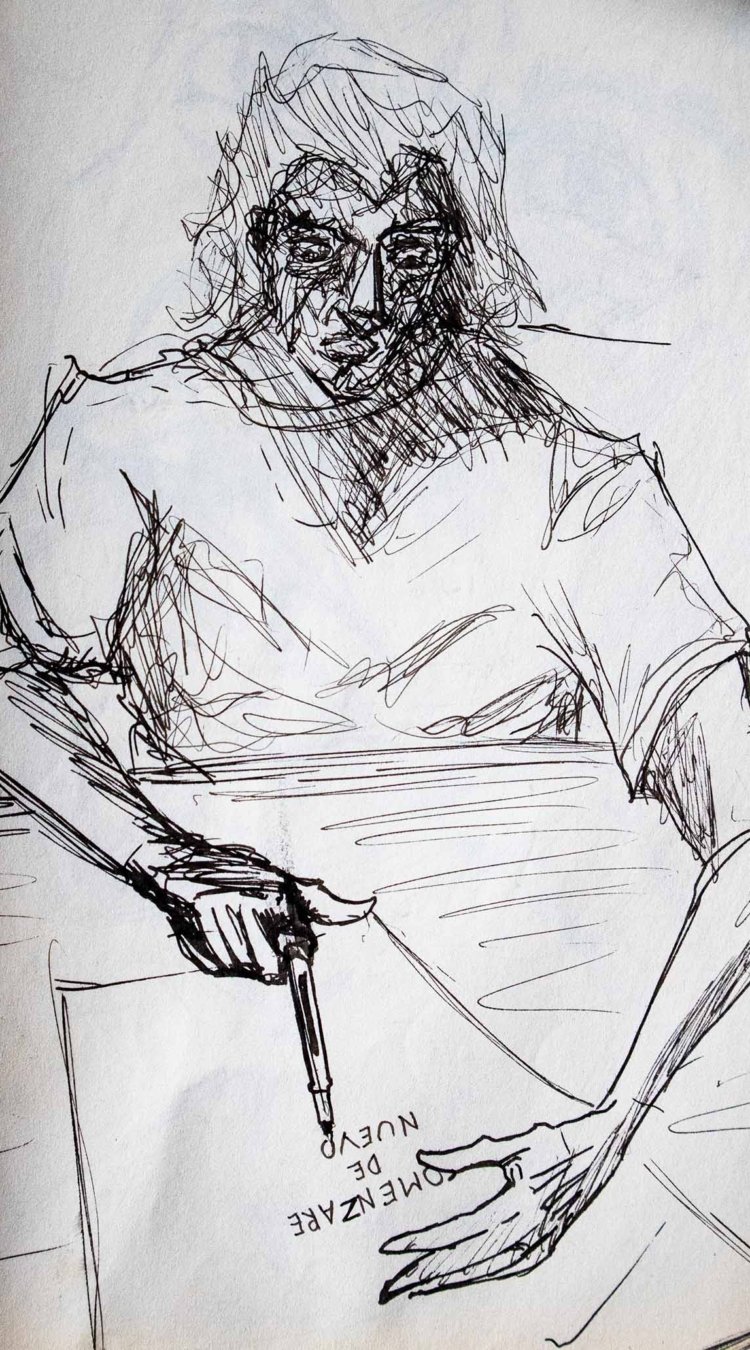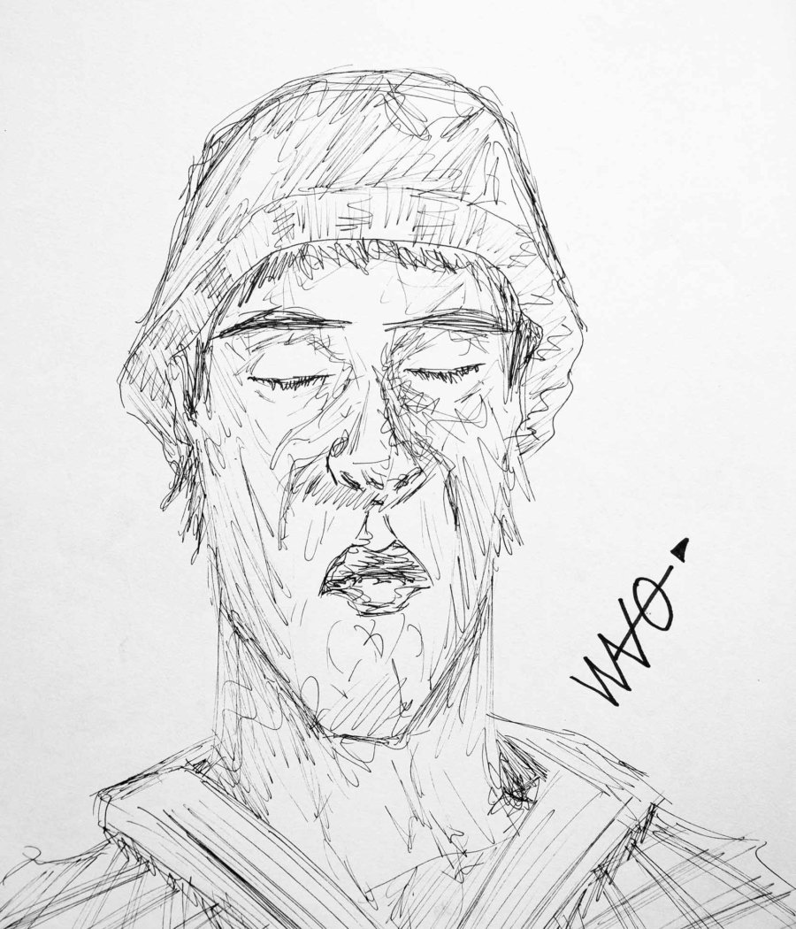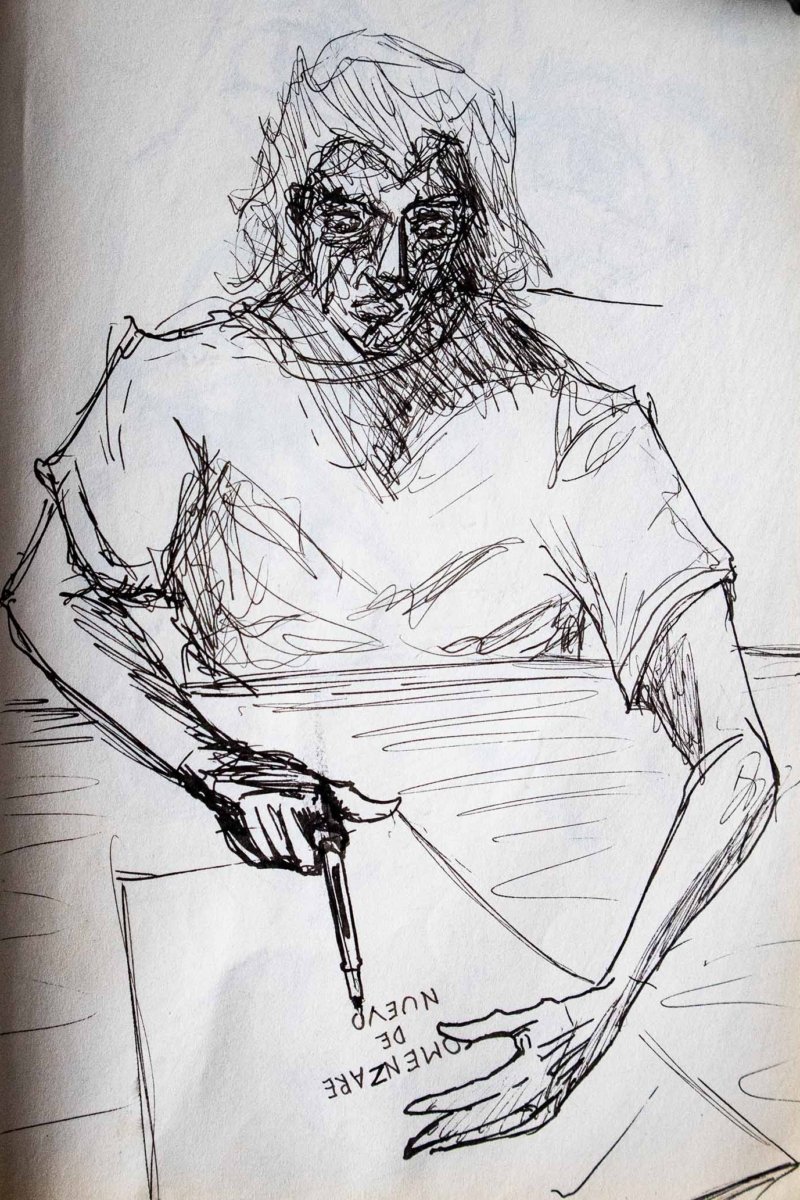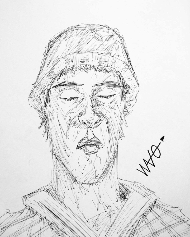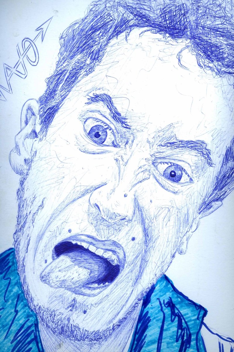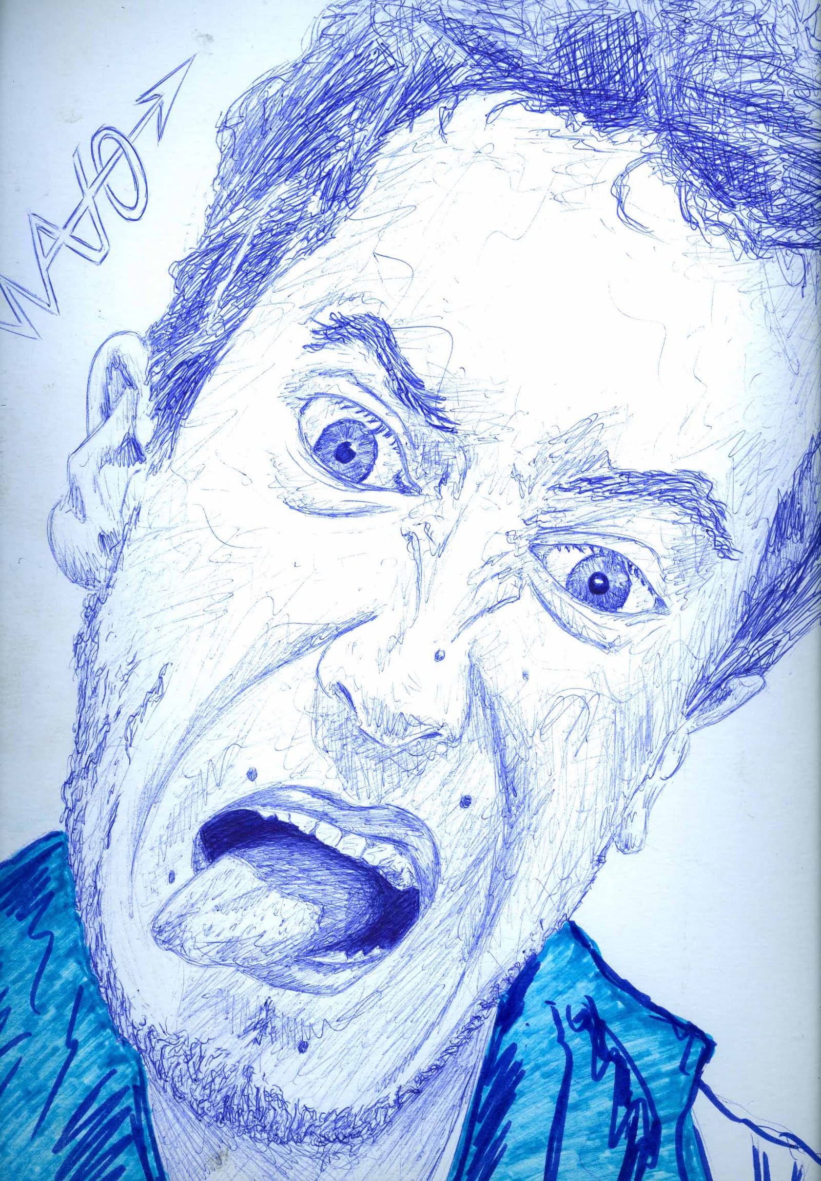 Bolígrafo sobre papel: Un autorretrato que hice después de la muerte de mi hermano.