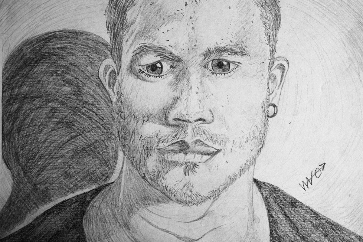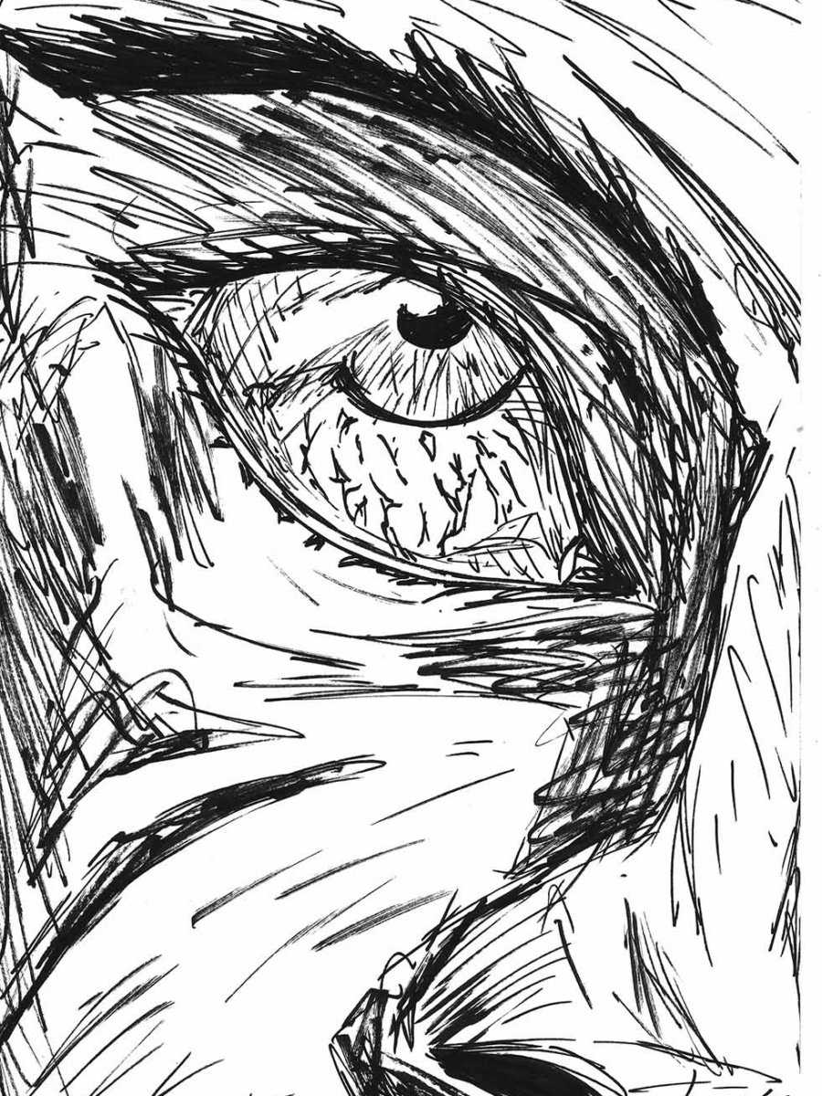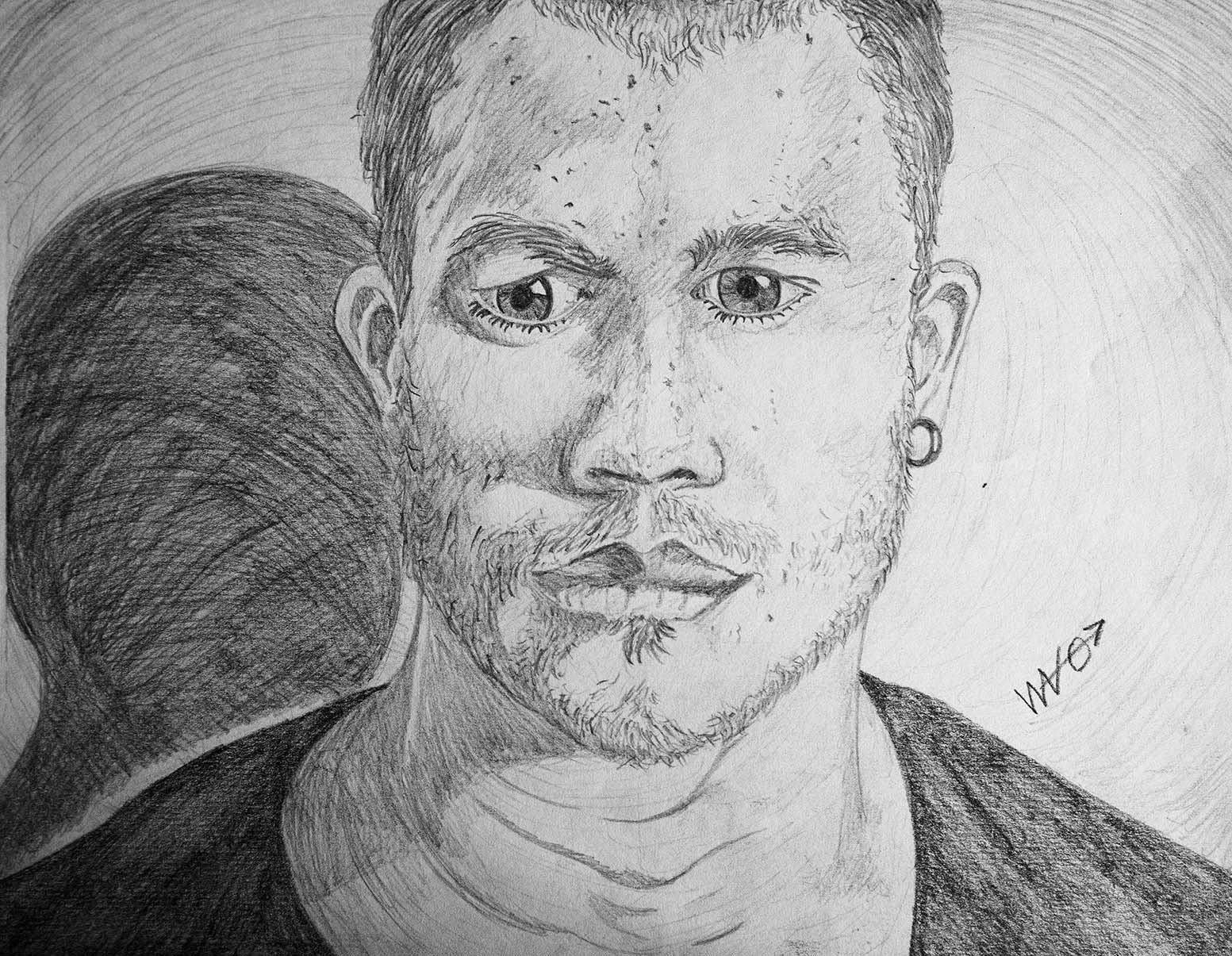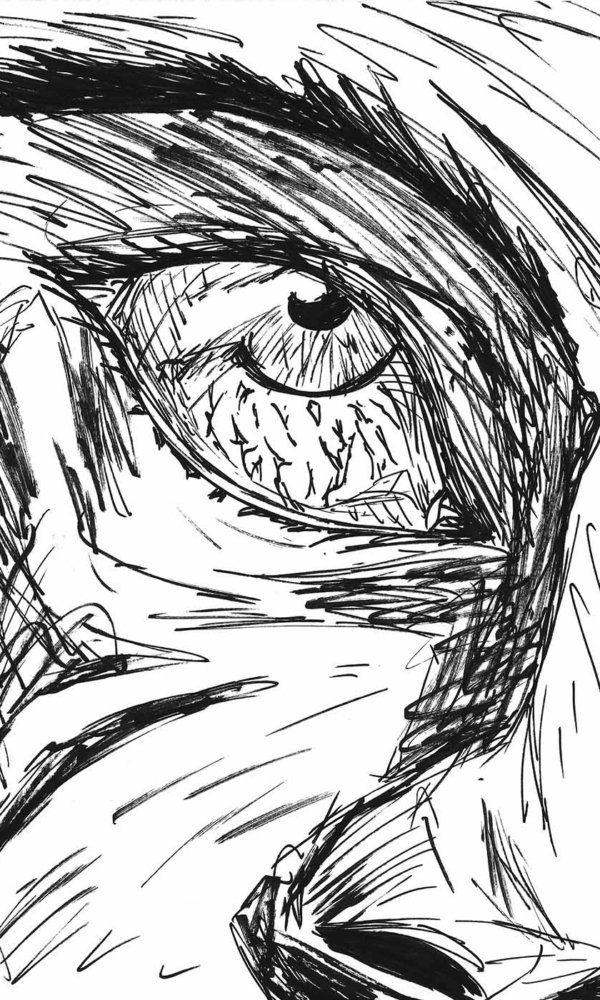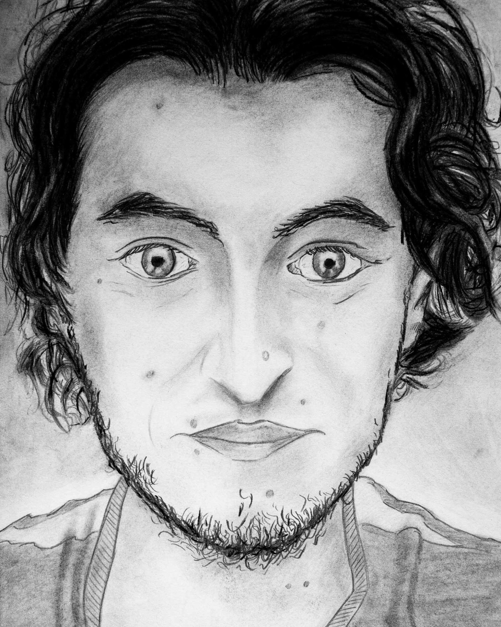 Bolígrafo sobre papel: Un autorretrato que hice después de la muerte de mi hermano.