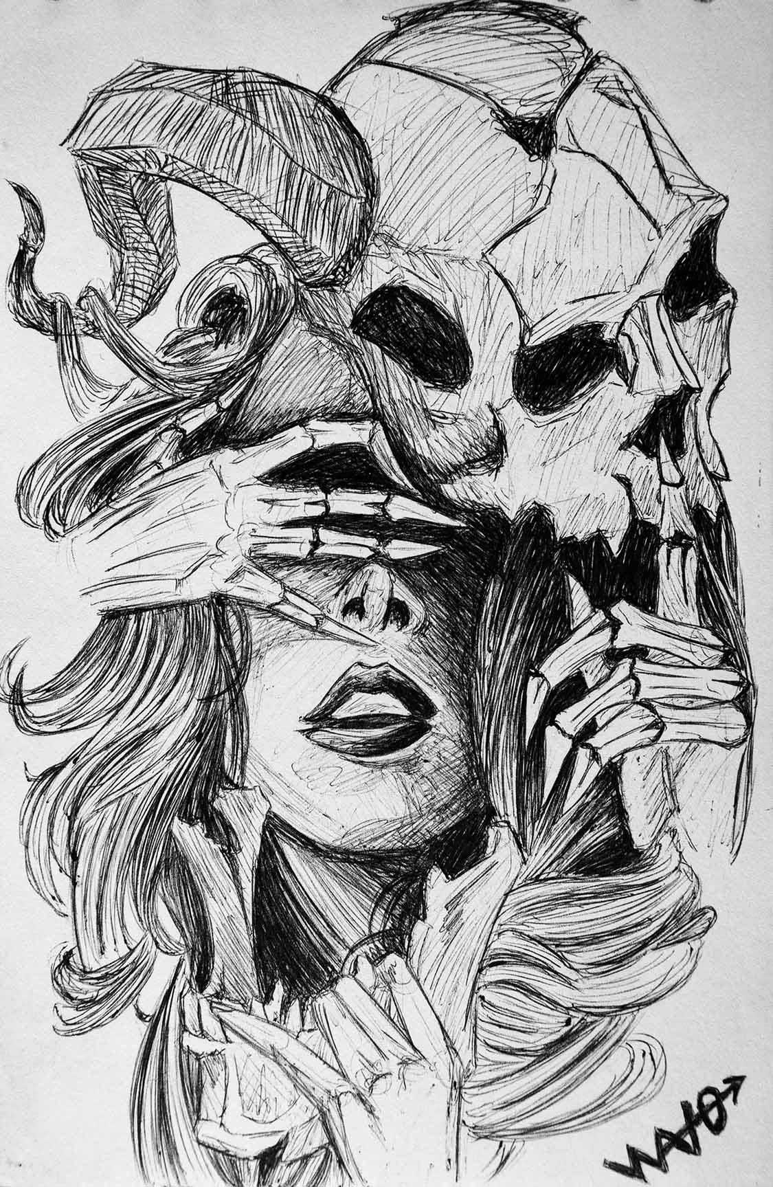 Bolígrafo sobre papel: Ejercicio de ilustración a partir de referencias online.