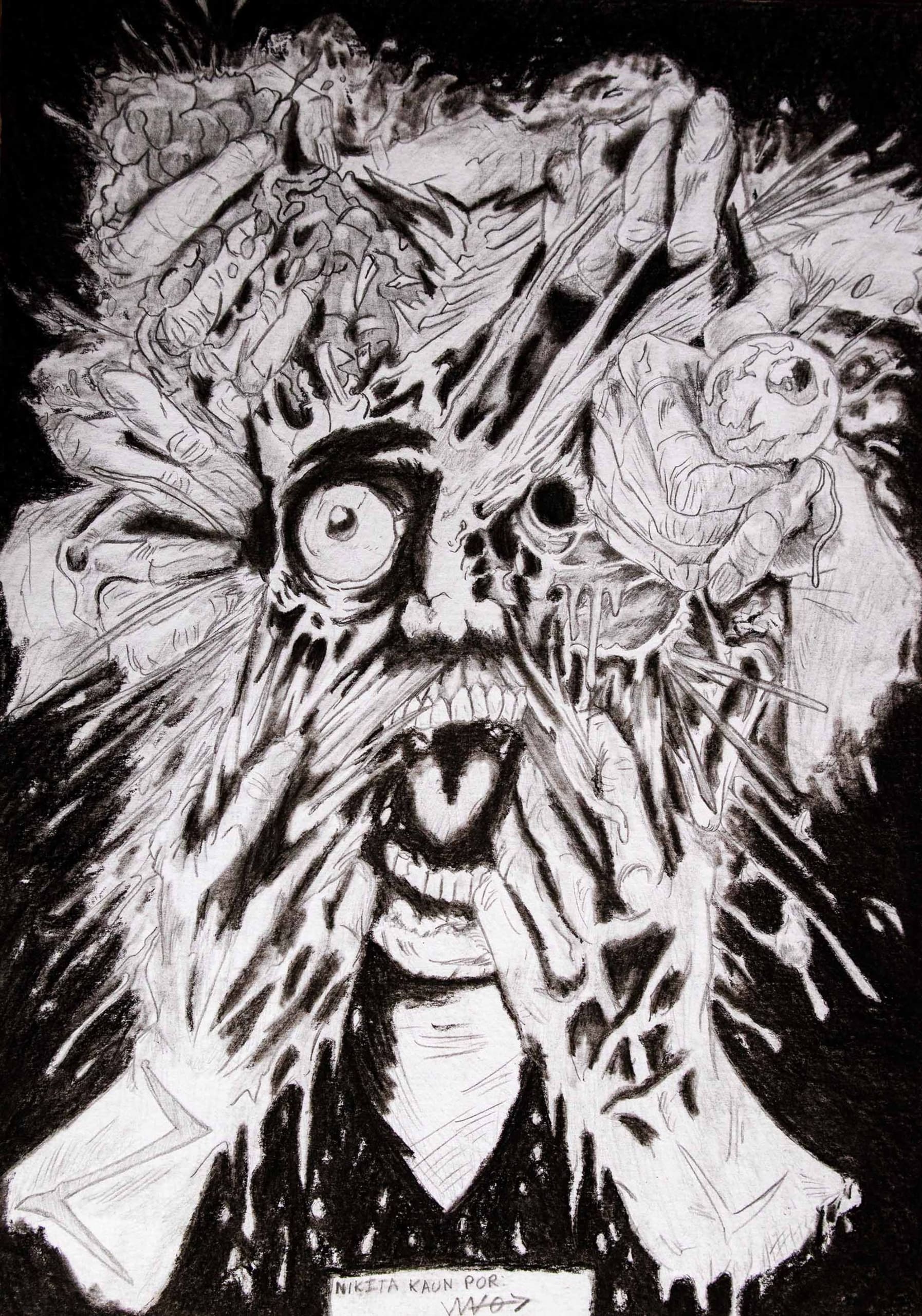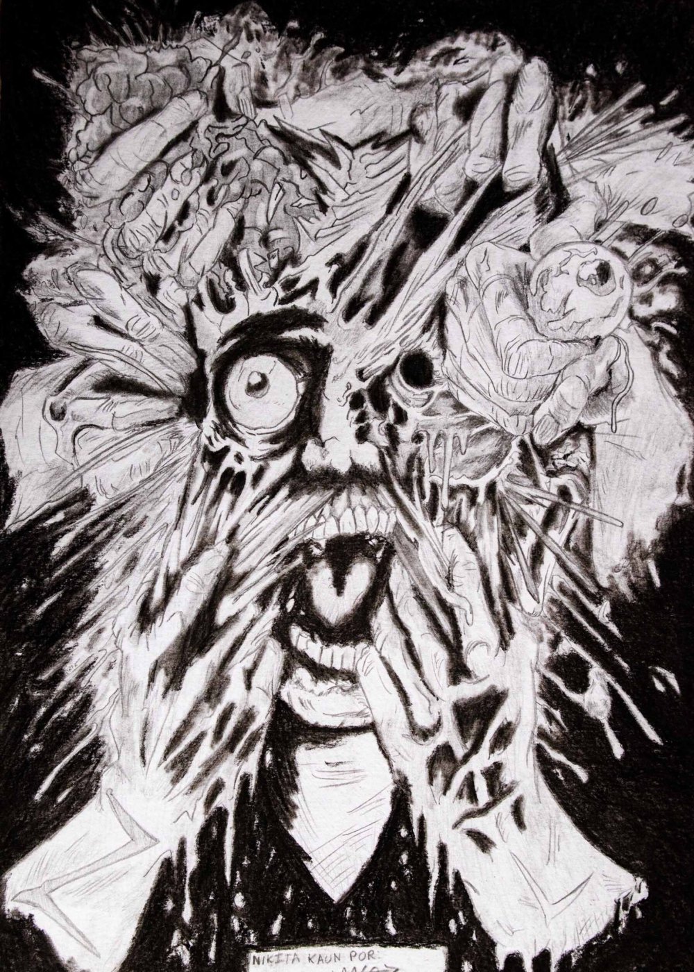 Grafito y carboncillo sobre opalina: Fant art de la ilustración que Nikita kaun realizó originalmente para la película Guerra Mundial Z