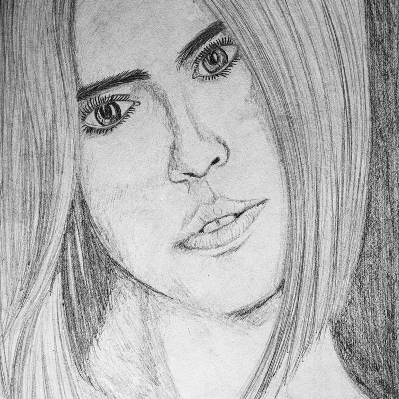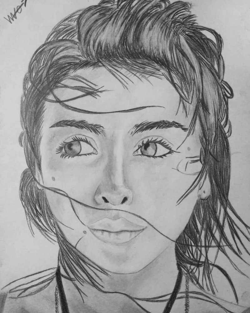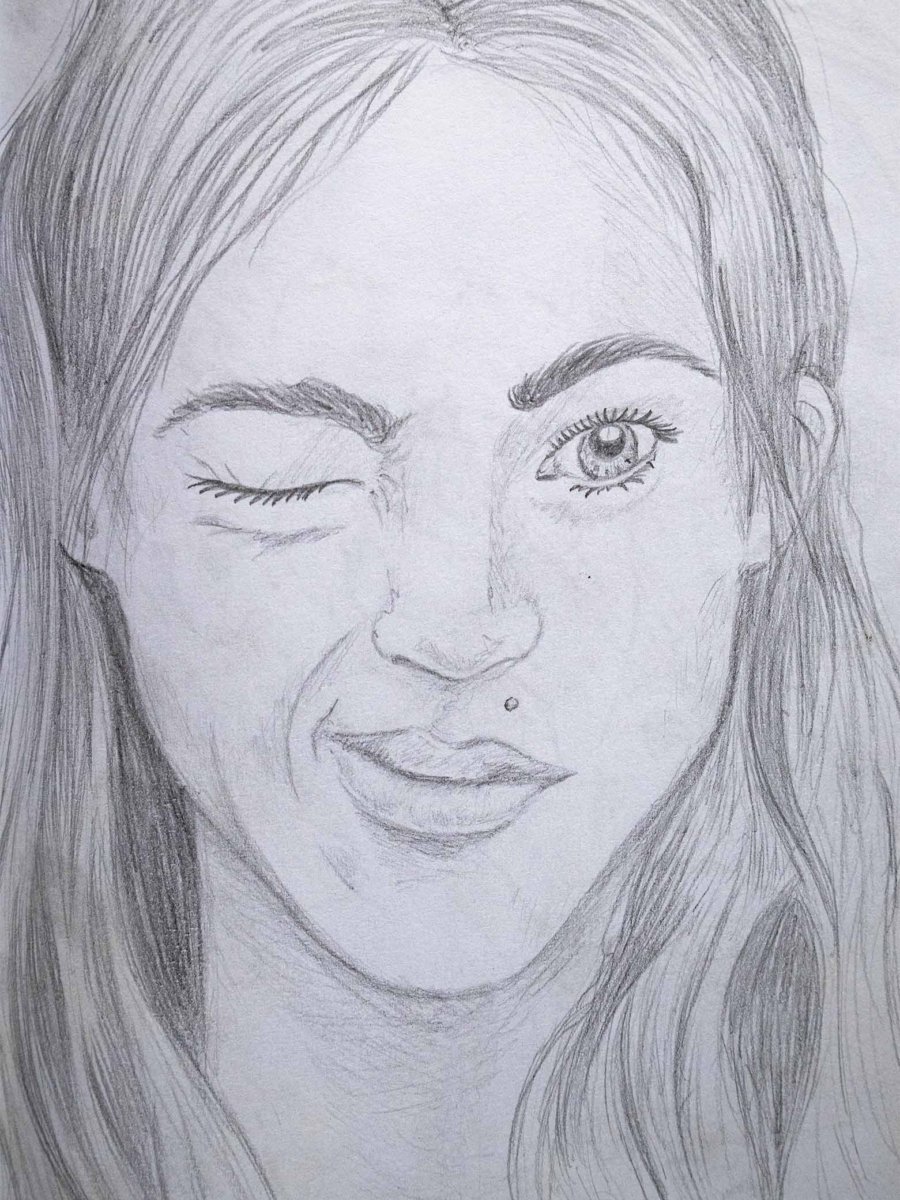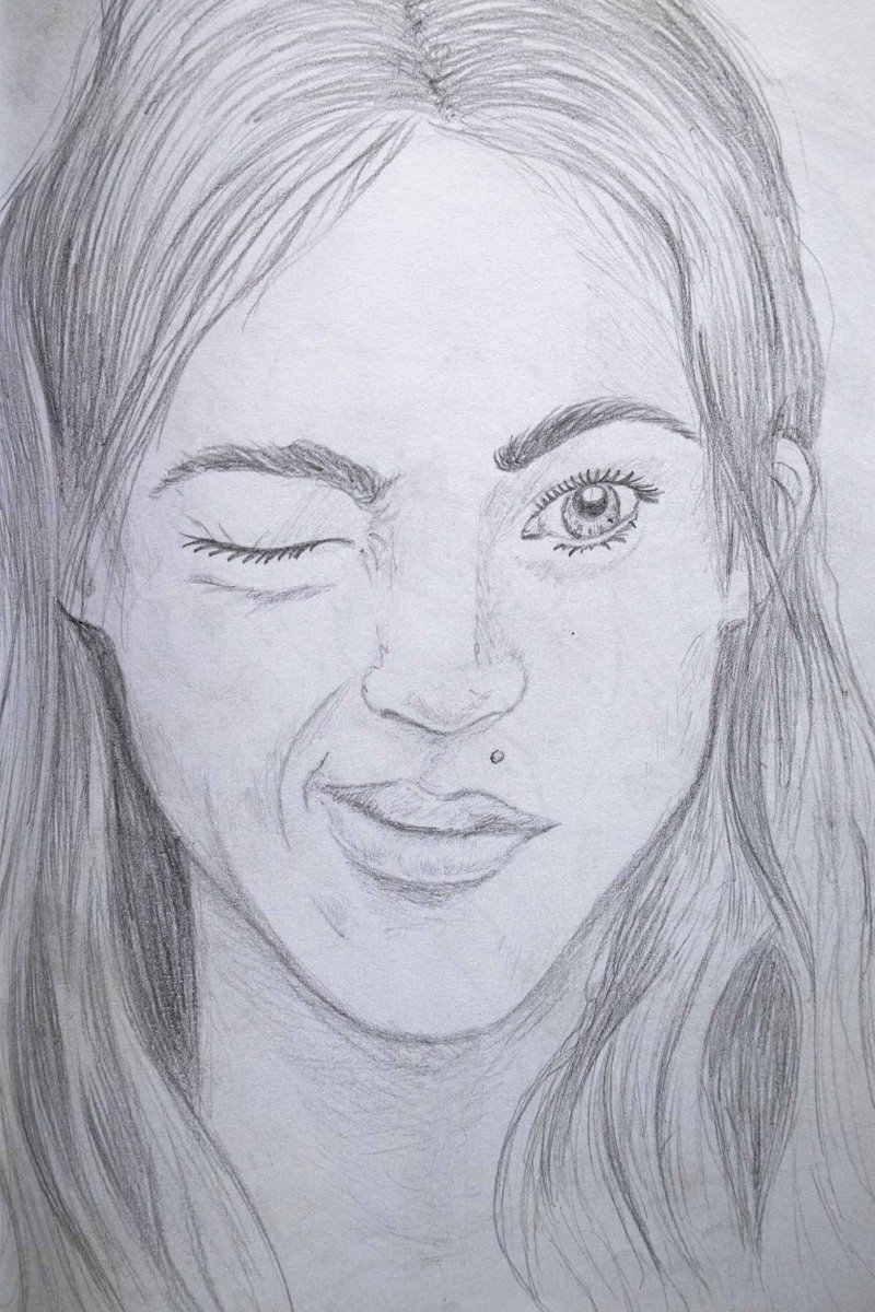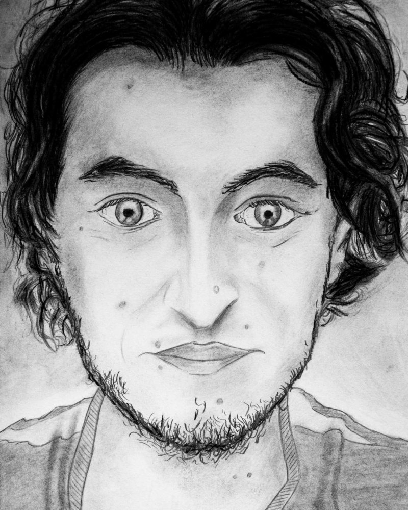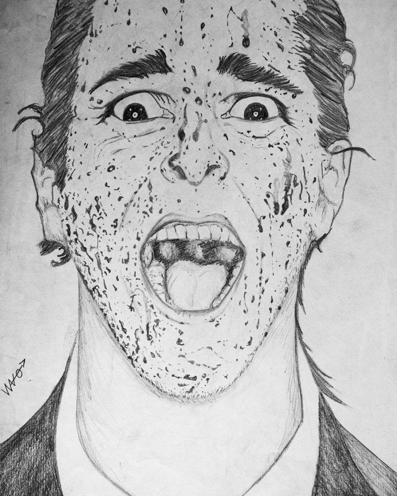 Grafito sobre papel . Ejercicio de retrato, inspirado en la película Psicópata Americano, Dirigida por Mary Harron