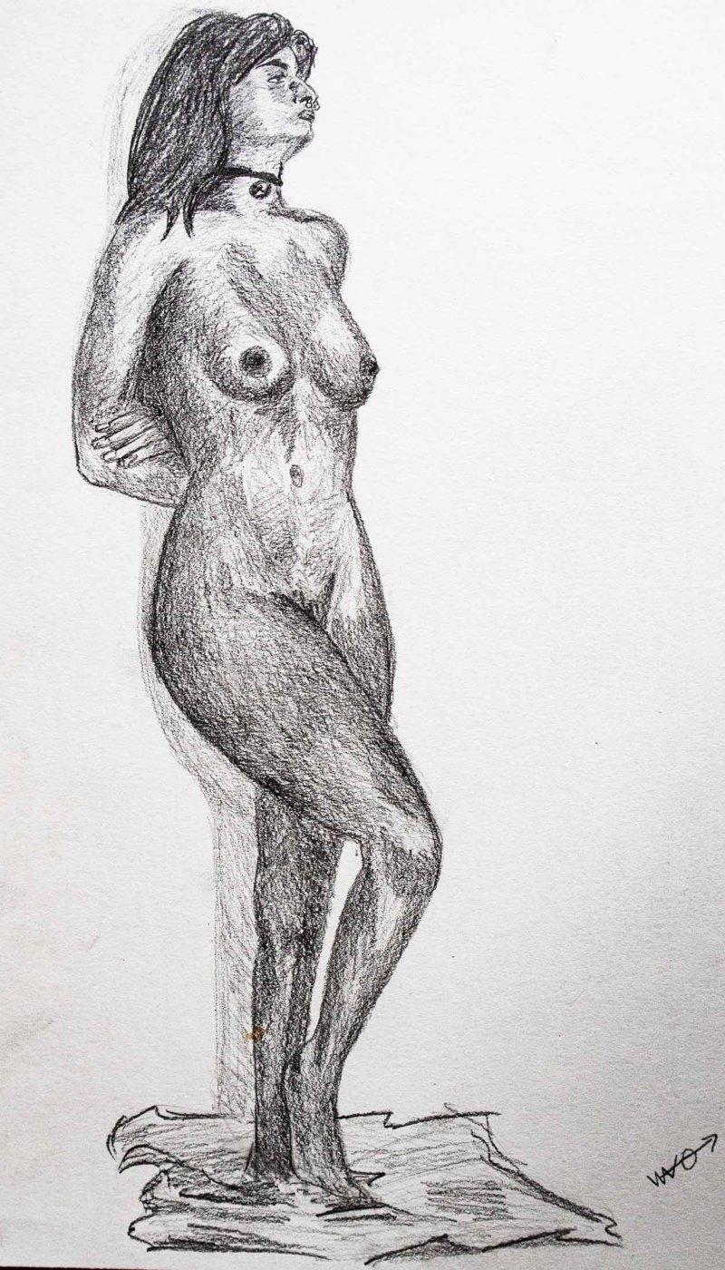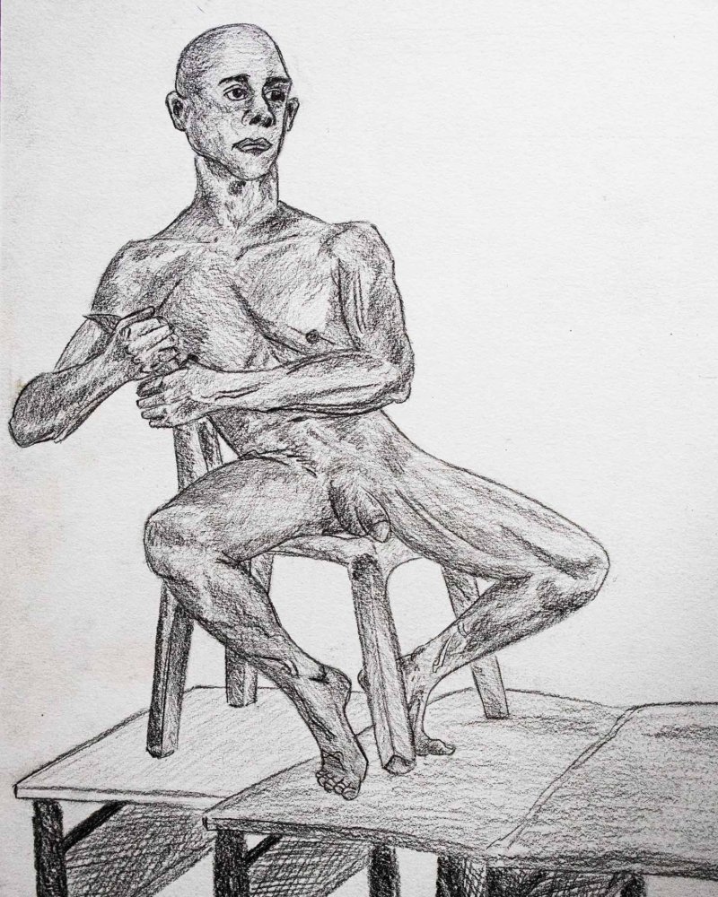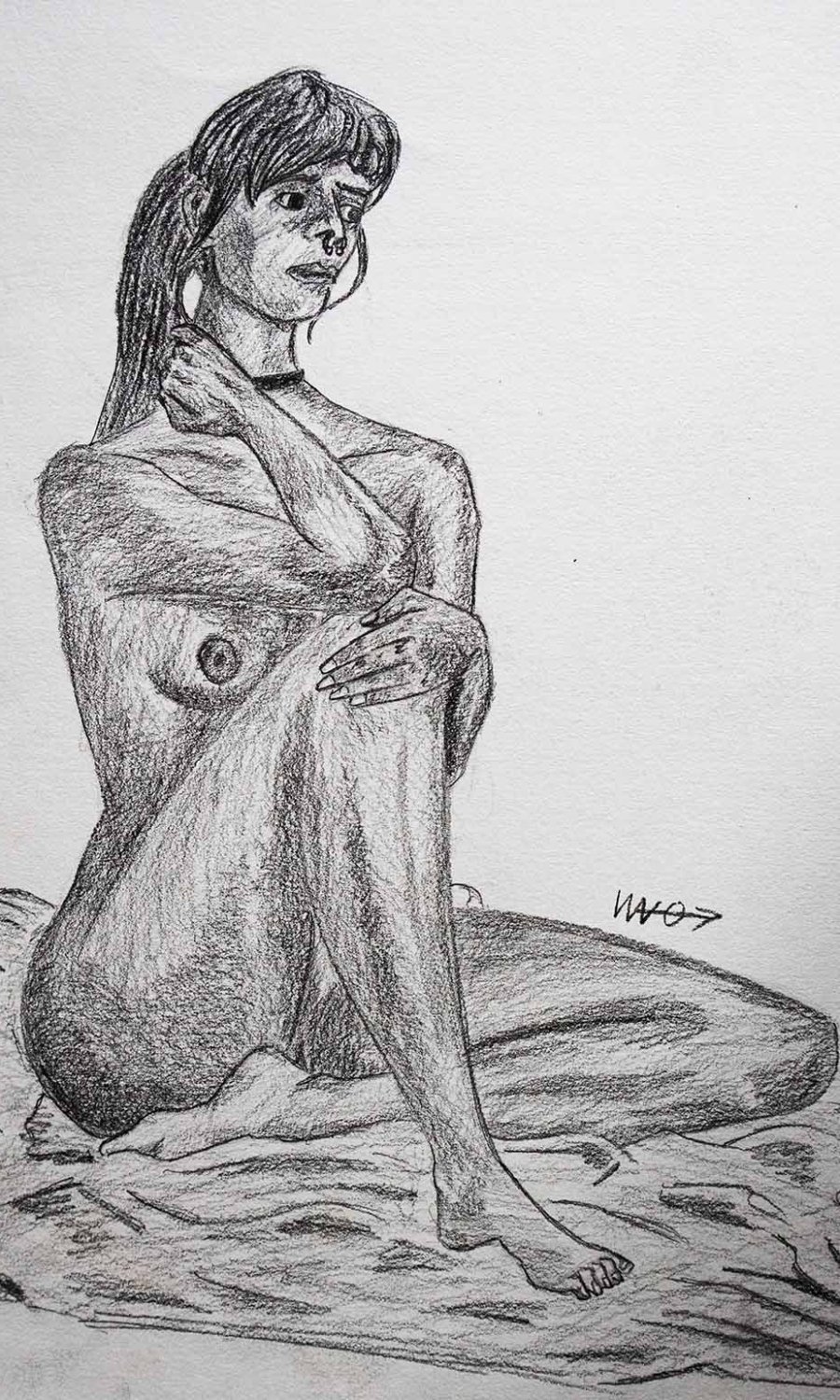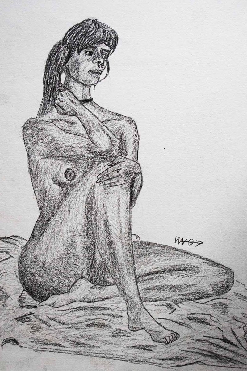 Grafito sobre papel . Dibujo del natural para la clase de dibujo anatómico, en la Escuela de Artes y Letras.
