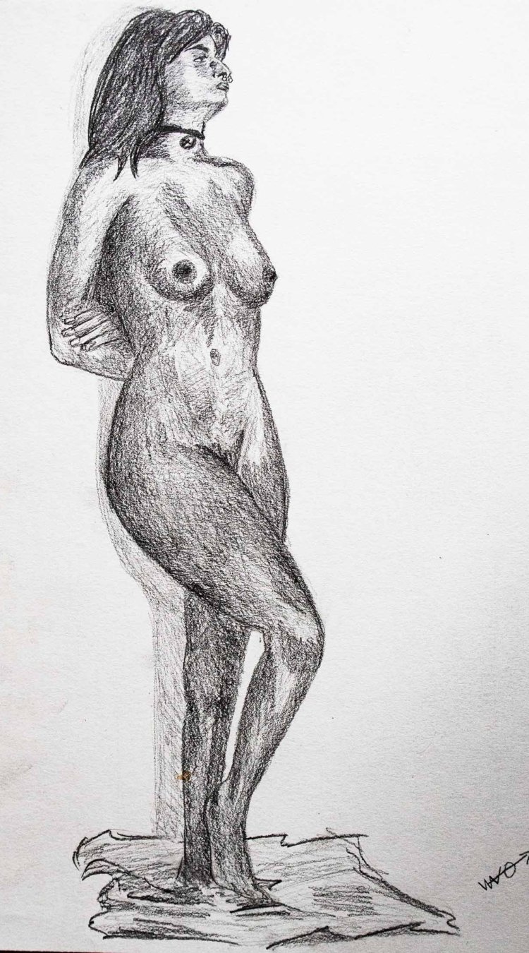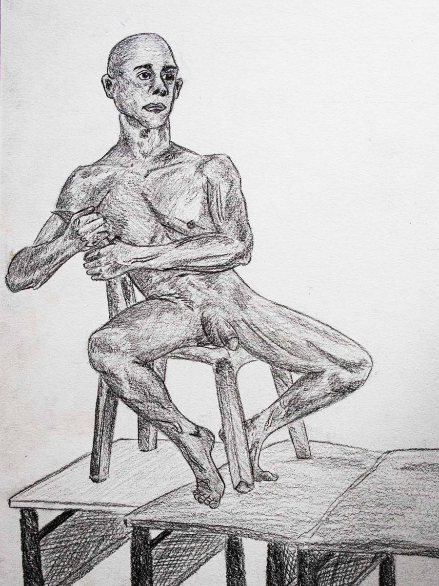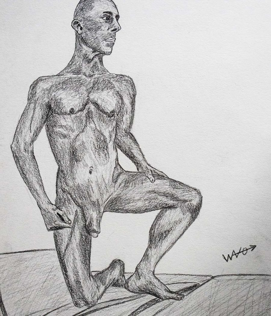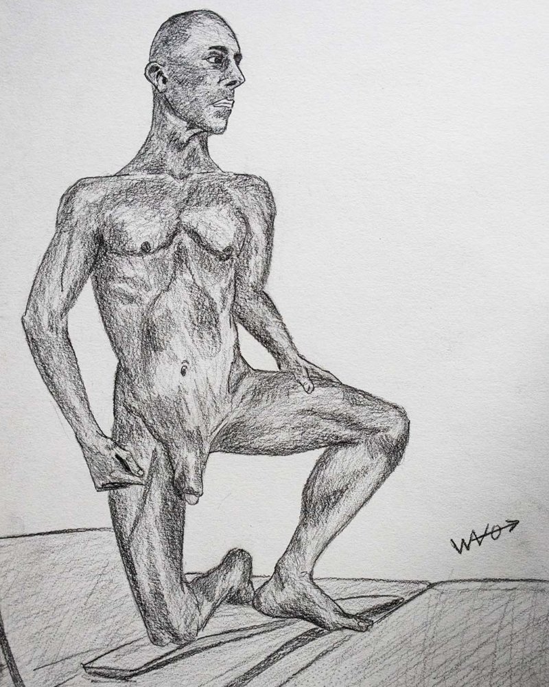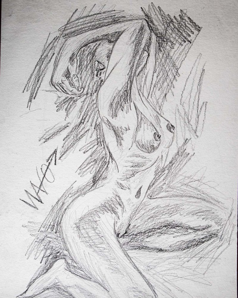 Grafito sobre papel . Dibujo del natural para la clase de dibujo anatómico, en la Escuela de Artes y Letras.
