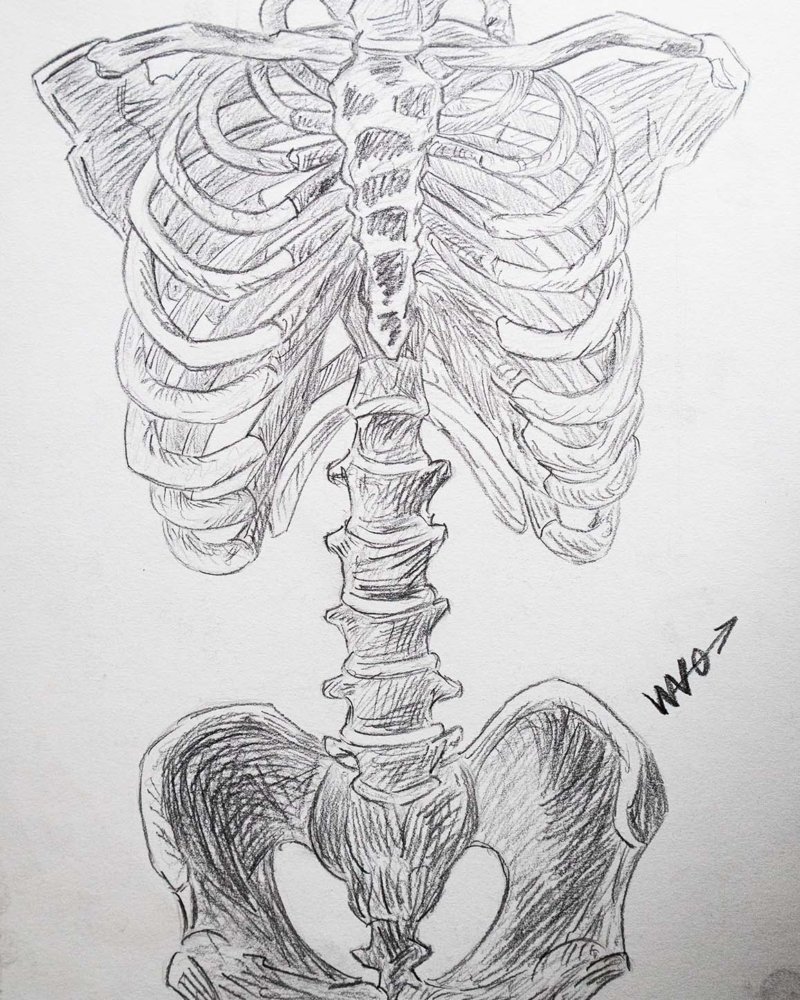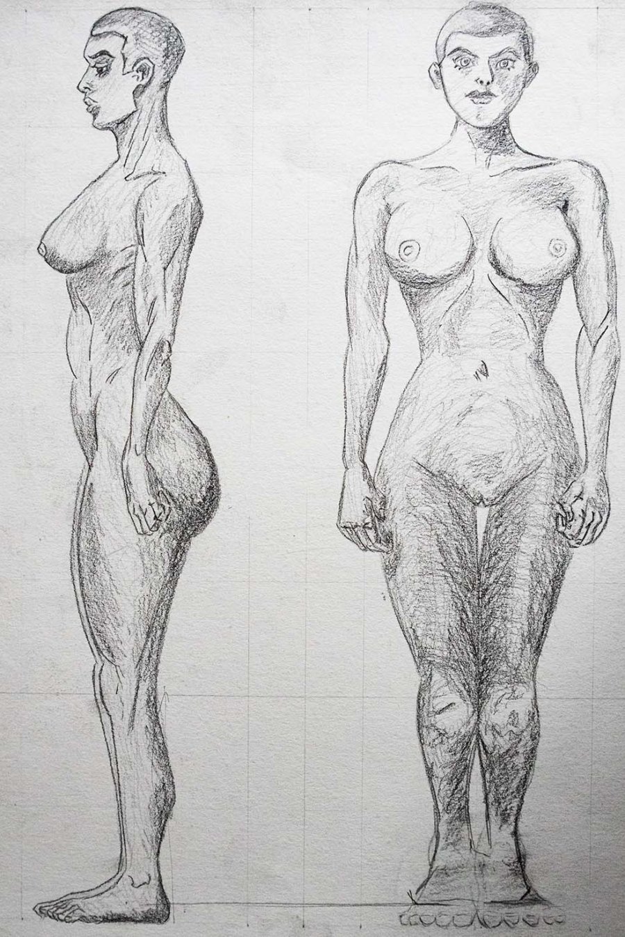 Grafito sobre papel. Ejercicio para la materia Dibujo anatómico, en la Escuela de Artes y letras.