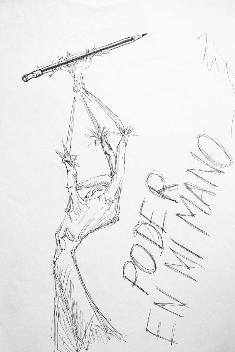 Boligrafo y plumon sobre papel . Yo merito, a su servicio.