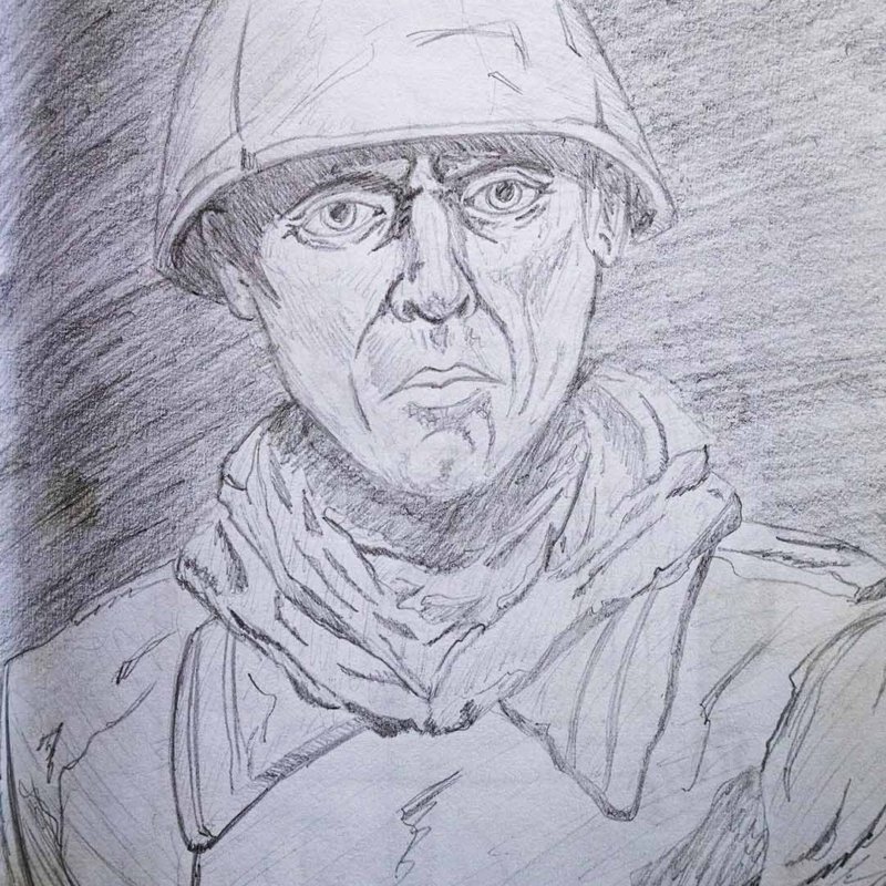Grafito sobre papel: Retrato de un soldado sovietico durante la segunda guerra mundial
